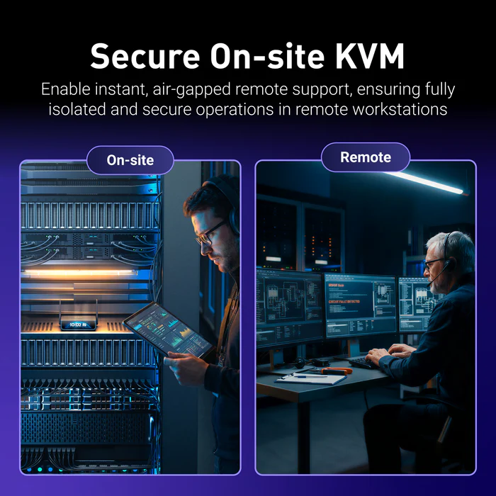 4K HDMI passthroughLocal display stays live while you manage the host remotely—no disruption to the desk setup.