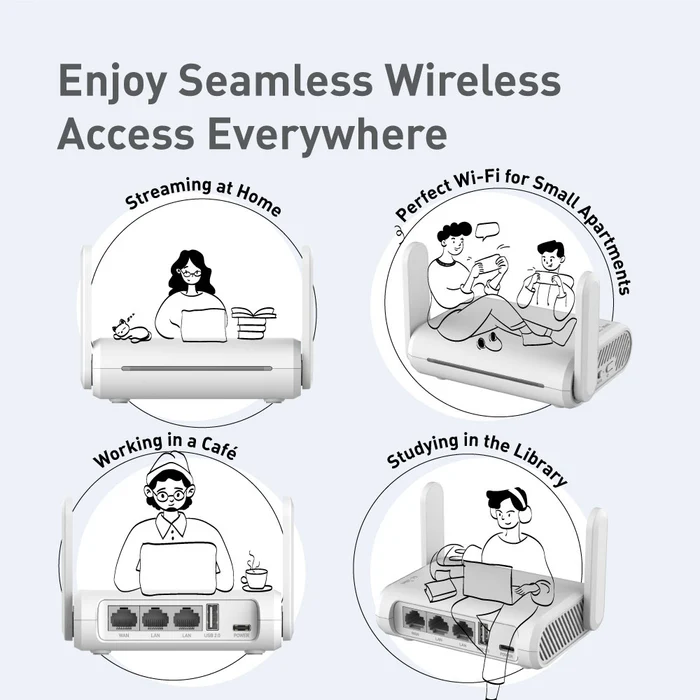 Opal is designed as an affordable and compact travel router for small businesses, apartments, and frequent travelers who need stable dual-band Wi-Fi with built-in VPN support and simple deployment.