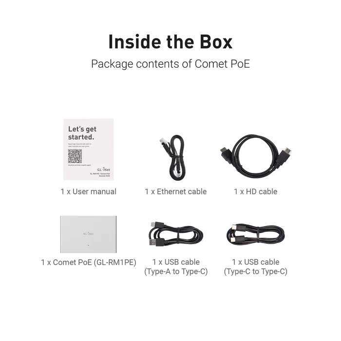 - 1 × Comet PoE (GL-RM1PE) remote KVM