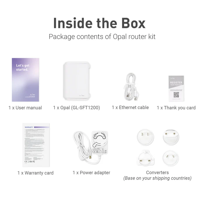 - Opal (GL-SFT1200) router (2-year warranty, per AFI WIRELESS)